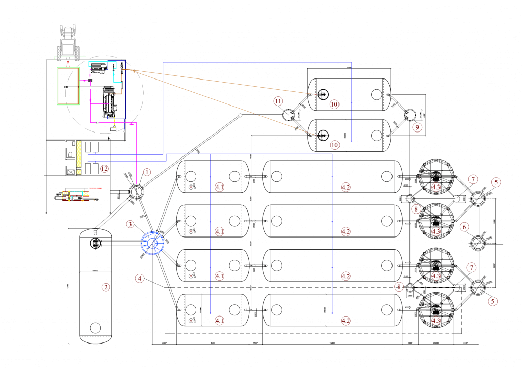 - un tanque de tratamiento de aguas residuales con etapa biológica y un decantador secundario,